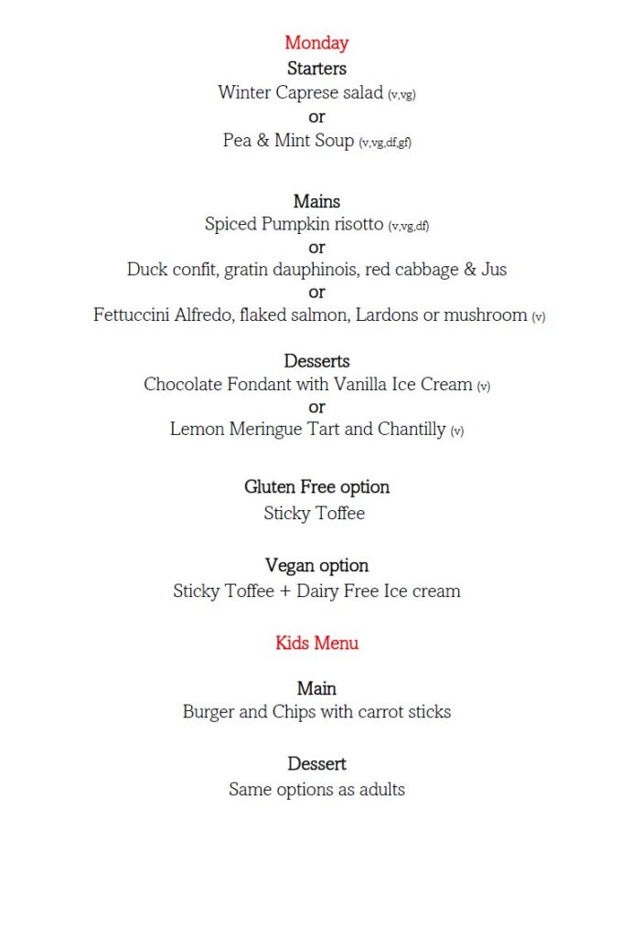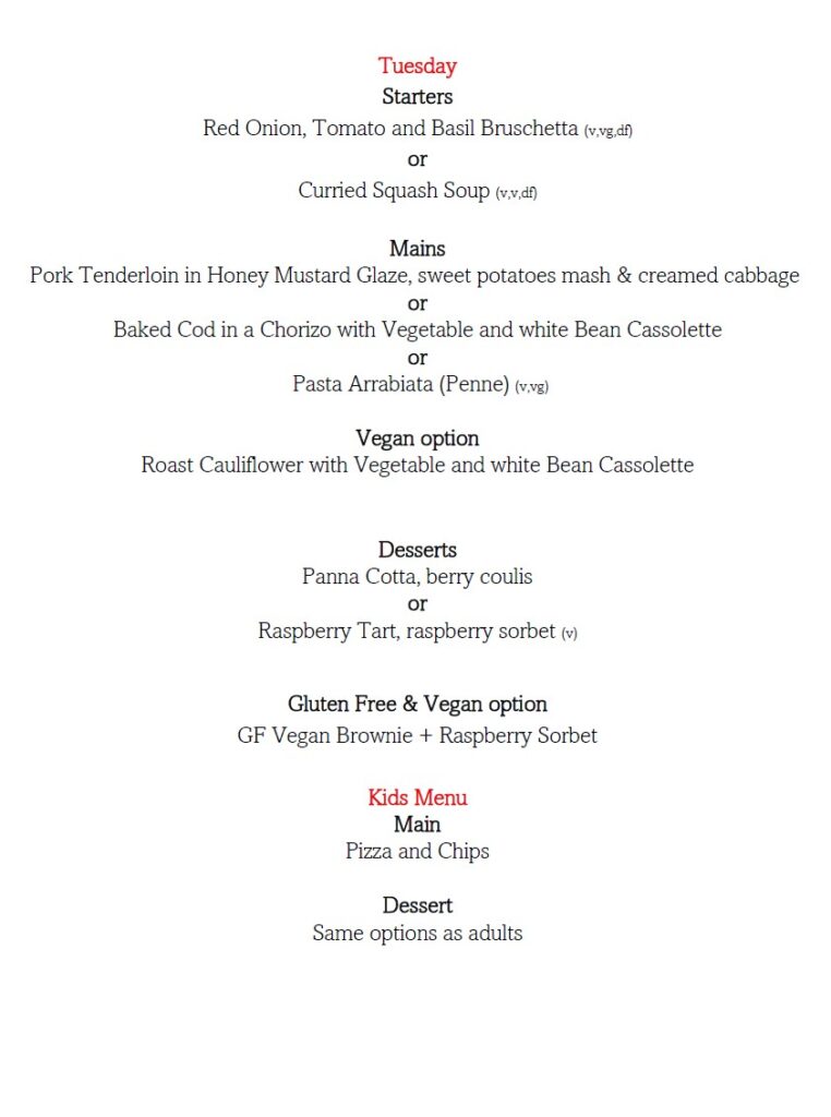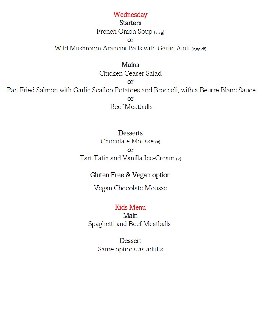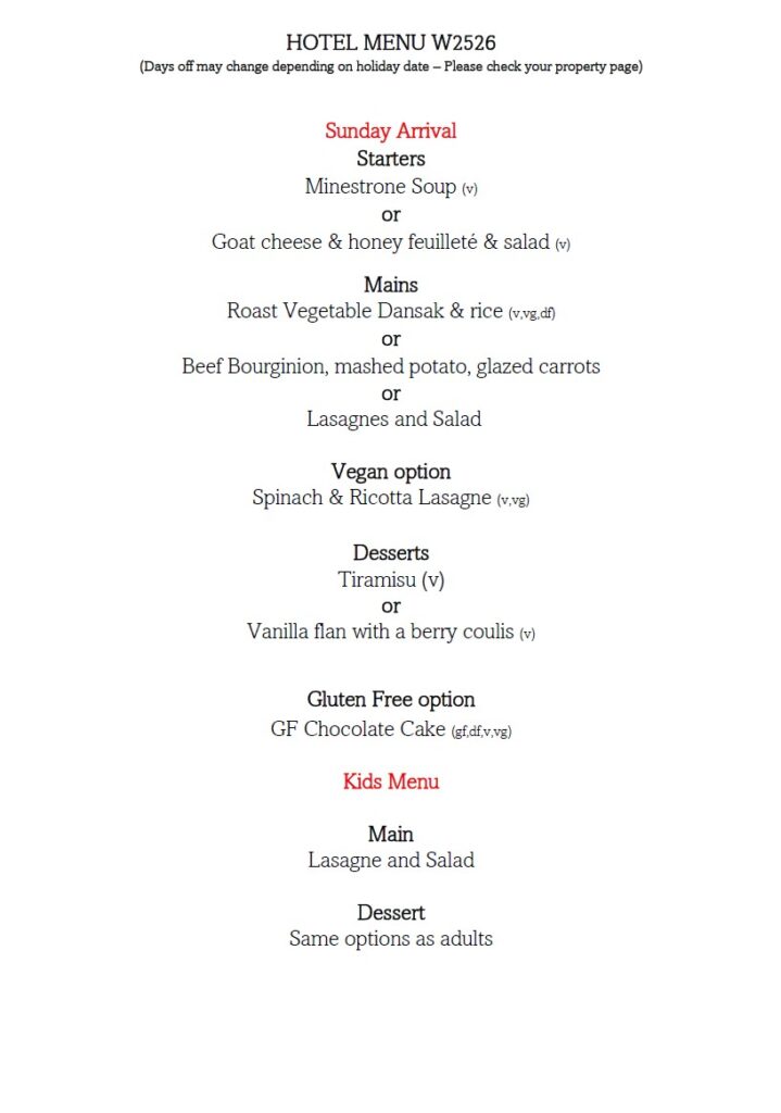 V – Vegetarian | GF – Gluten Free | VG – Vegan | DF – Dairy Free